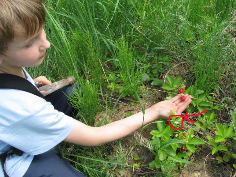 Эта звериная ягода отличается от земляники по цвету черты поноса.