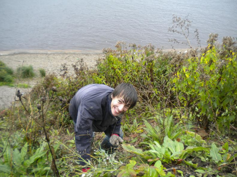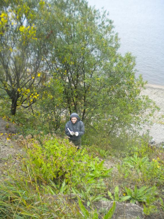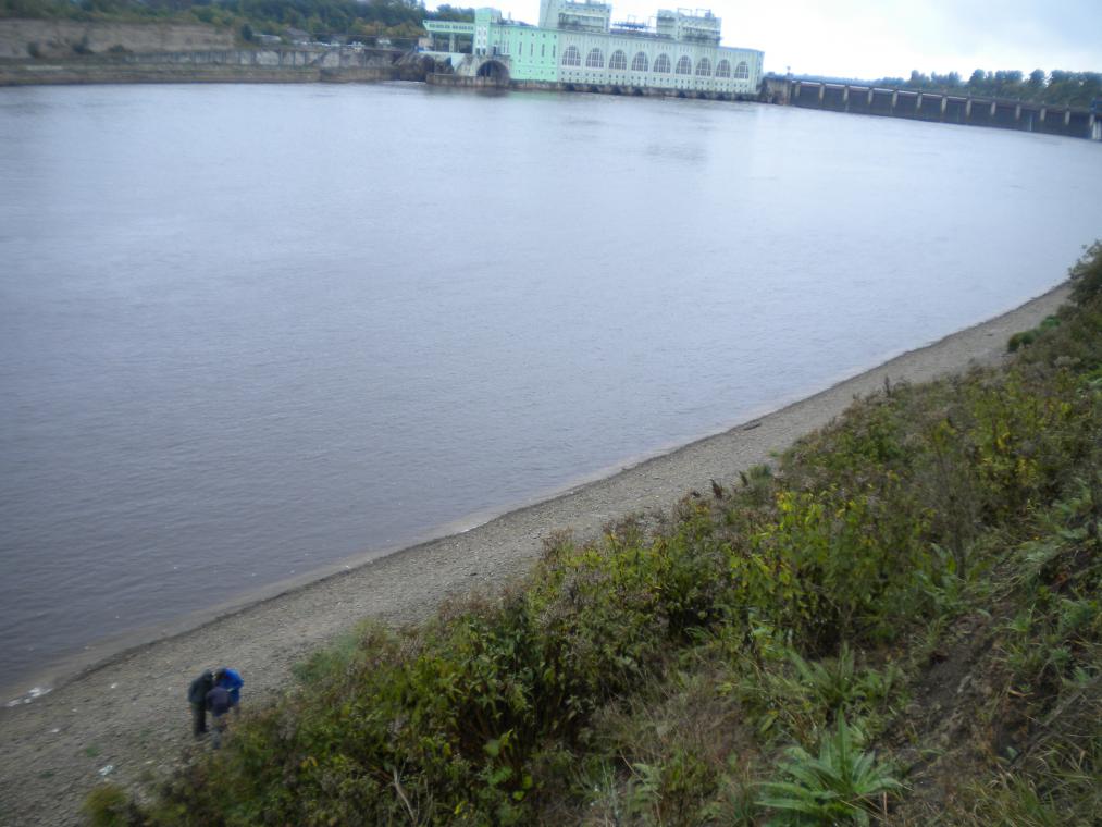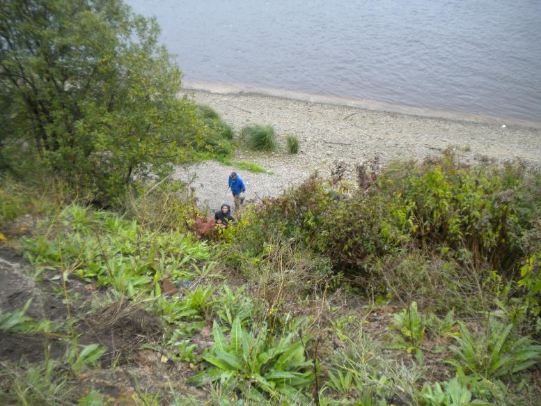 Левый берег реки Волхов в районе ГЭС посетили на следующий день. Постоянно шёл дождь, то моросящий, то проливной. Коренное обнажение расположилось на крутом склоне. На глаз высота склона составляет до 80 м.