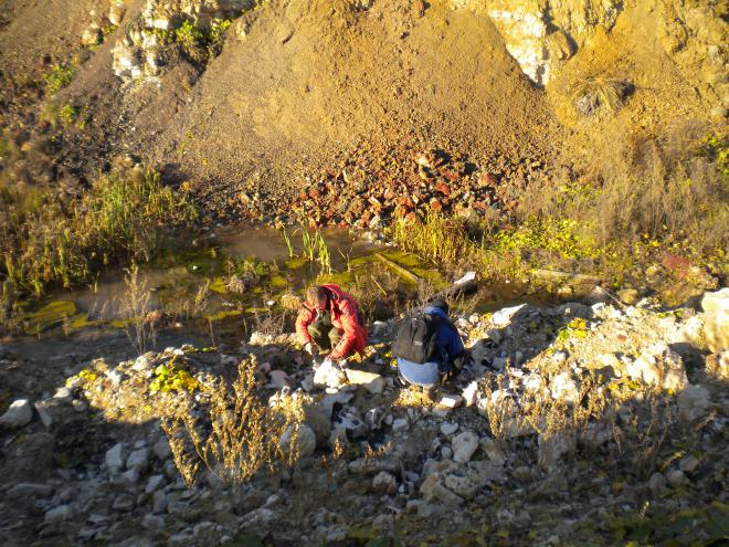 Ещё не упомянули, что на карьере удалось насобирать чёрных кремней с очень красивыми друзочками и щётками кварца На шестом фото видны чёрные кремни. На предпоследнем фото Василий ищет друзочки кварца в кремнях.