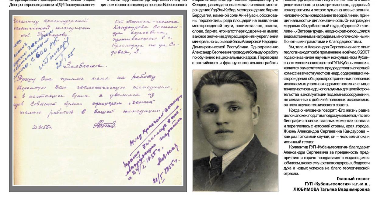 Nagarjuna, судя по газете, рядом с тобой живёт советский геолог Кандауров Александр Сергеевич (1930 г.р) из “Кубаньгеология”. Кладезь информации по месторождениям Краснодарского края и Алжира. (Немного Вьетнама — ртуть, сурьма).