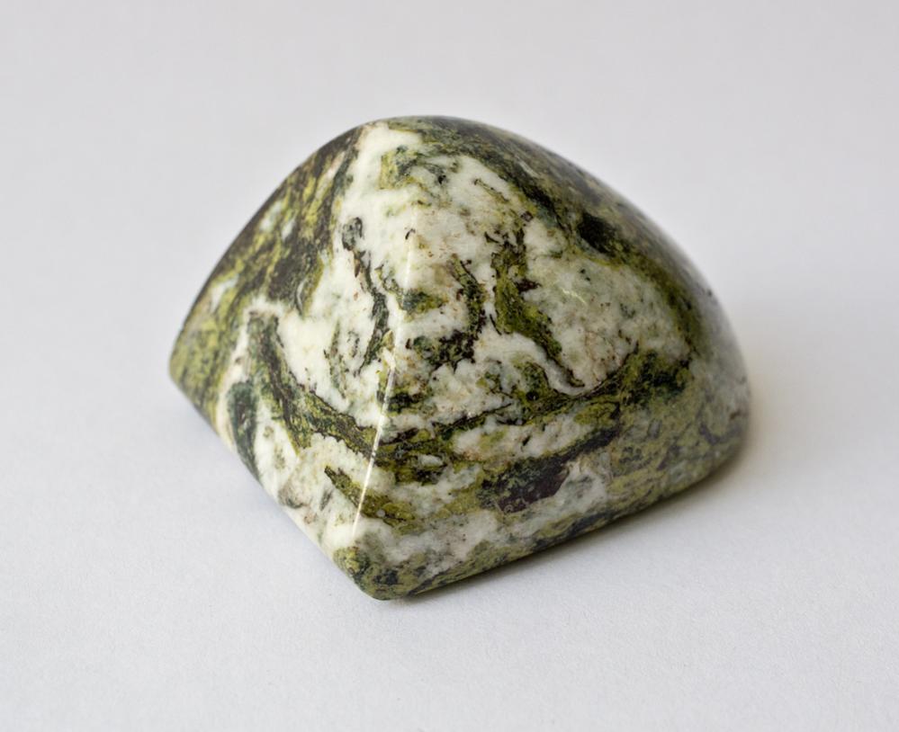 В одной из недавних поездок в горы за камнем (жадеит, нефрит) насобирали несколько образцов в форме речной гальки внешне очень похожих на жадеит и нефрит, только значительно мягче. Но встречаются вместе с ними. После шлифовки выяснилось, что это серпофиты (благородный змеевик).