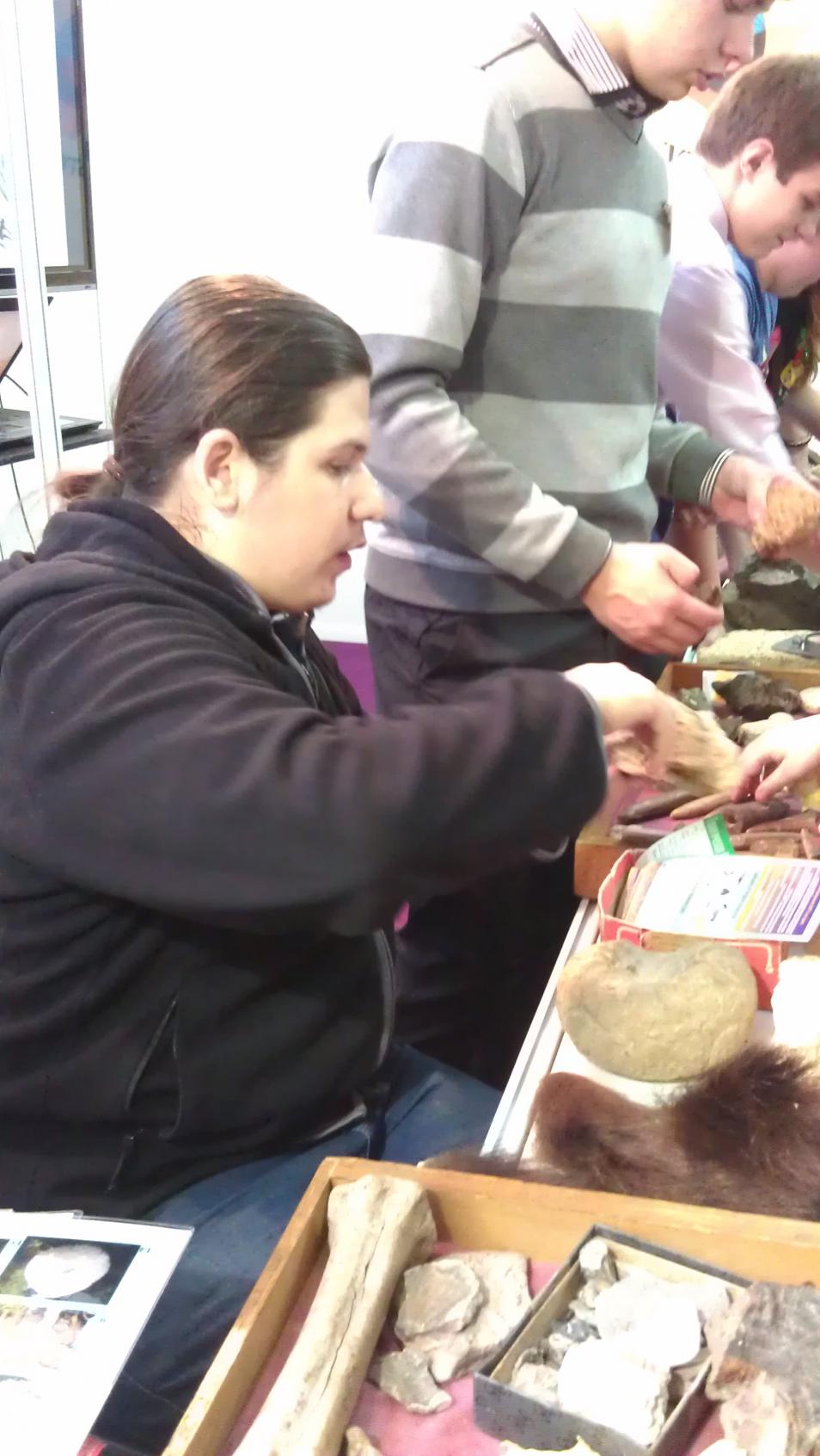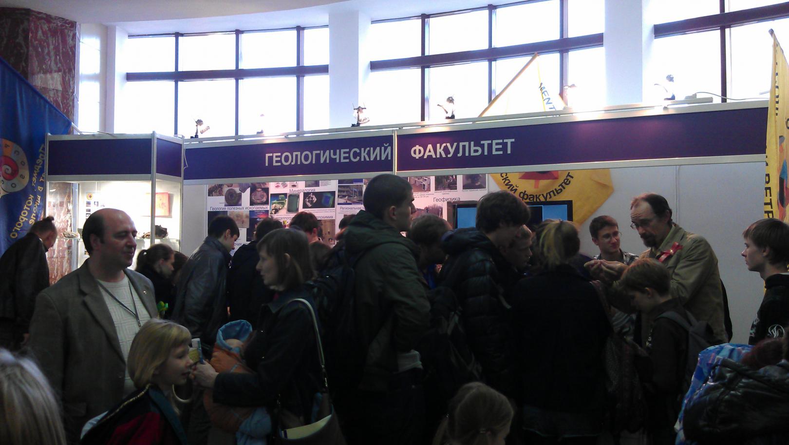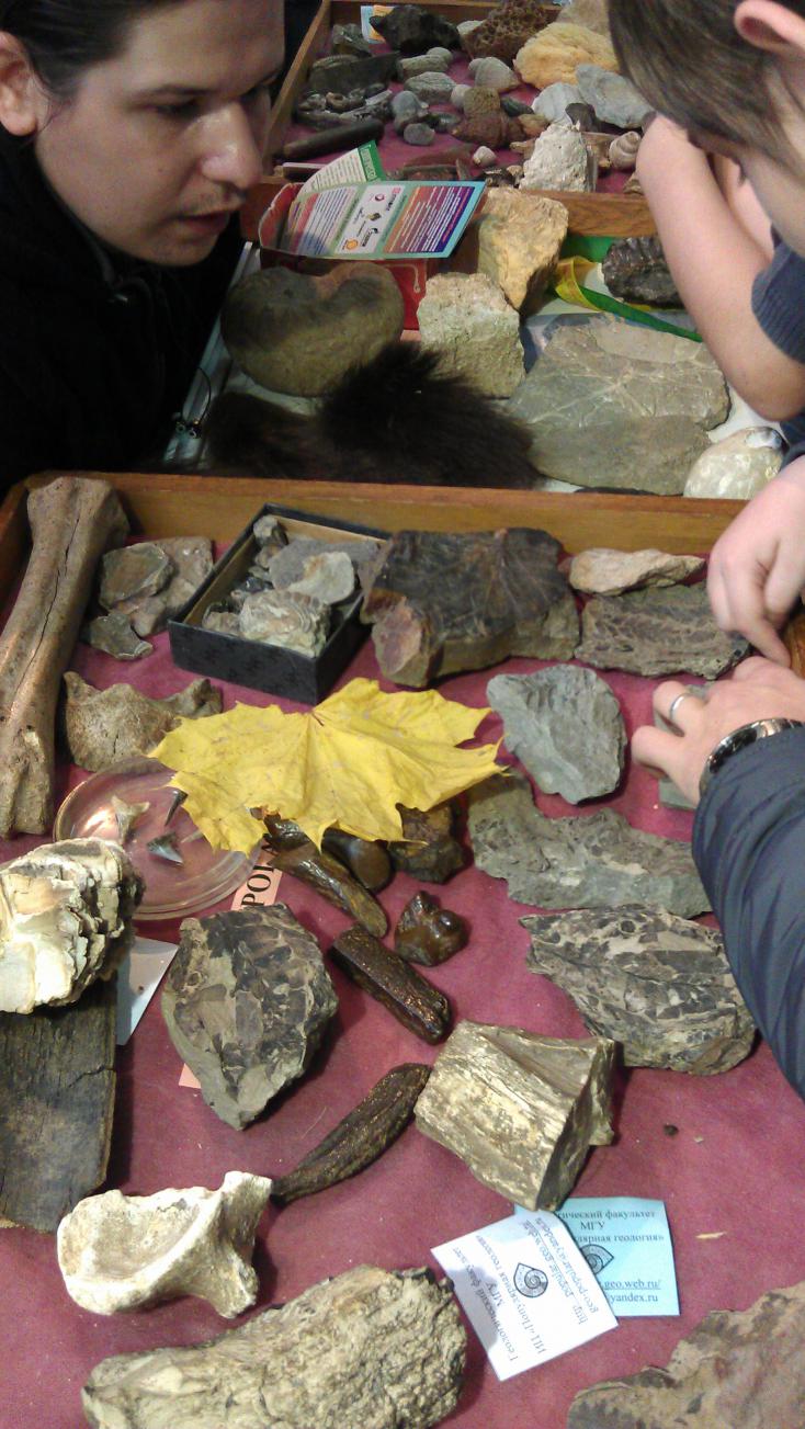 В шуваловском корпусе МГУ (одно из зданий, построенных женой Лужкова; по адресу Ломоносовский проспект, д. 27, корп. 4), на входе слева (до полицейских рамок), в течение двух дней фестиваля науки размещался стенд Геологического факультета МГУ. Удивительно, но там толпился народ, интересующийся камнями.