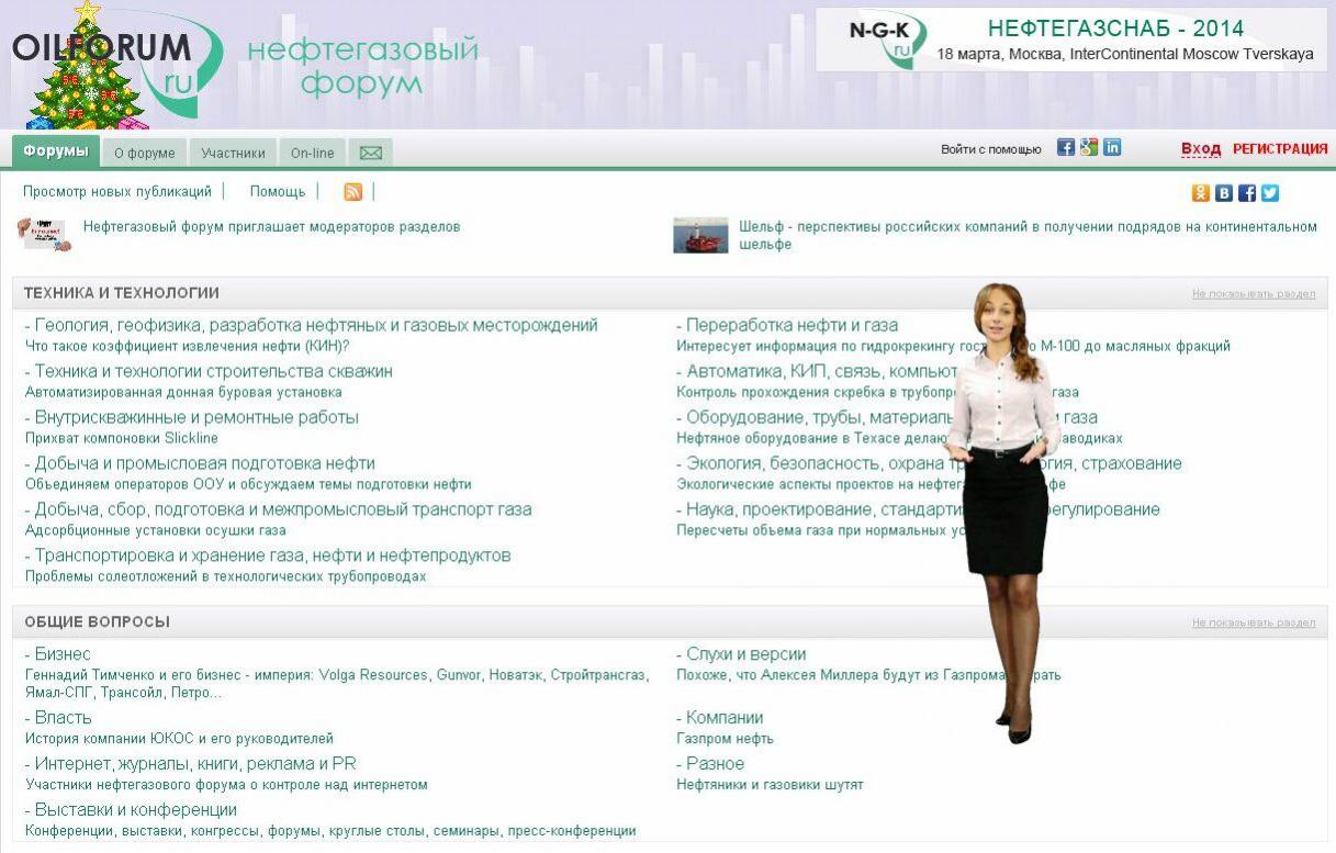 Зашёл на один нефтегазовый форум, а там сразу рекламный ролик: “Здравствуйте, рада приветствовать Вас на форуме нефтяников и газовиков. Здесь знакомятся с коллегами. Находят половых партнёров. Получают ответы на свои вопросы. Теперь у Вас есть возможность привлечь к обсуждению широкий круг специалистов из многих городов и стран. Большинство участников — профессионалы своего дела. В их числе руководители, использующие Интернет.