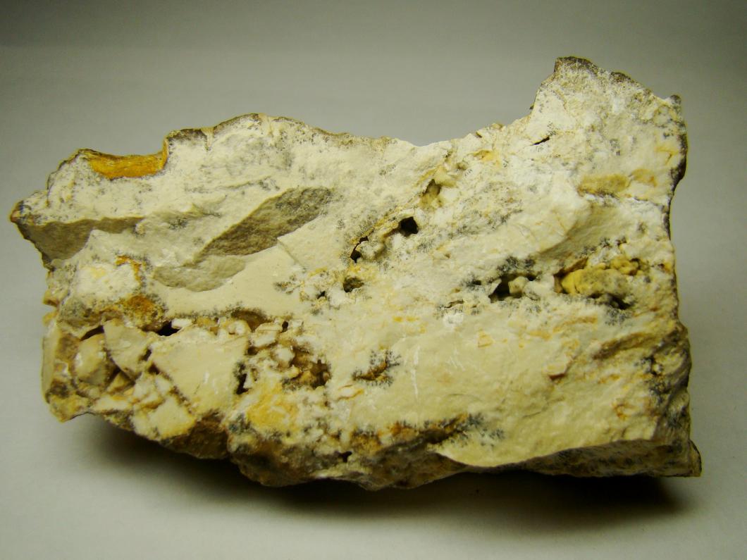 7. Известняк с жеодами натёчного кальцита и с дендритами окислов марганца.