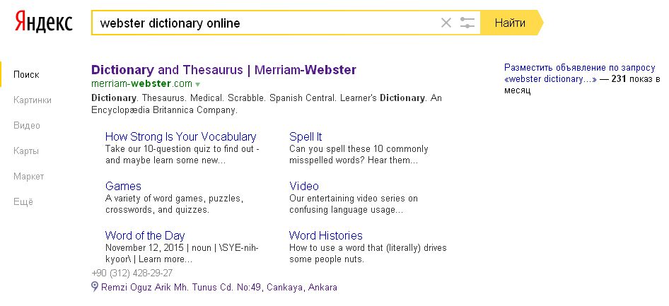 Яндекс показывает, что Merriam-Webster — это подразделение Энциклопедии Британника со штаб-квартирой в Турции.