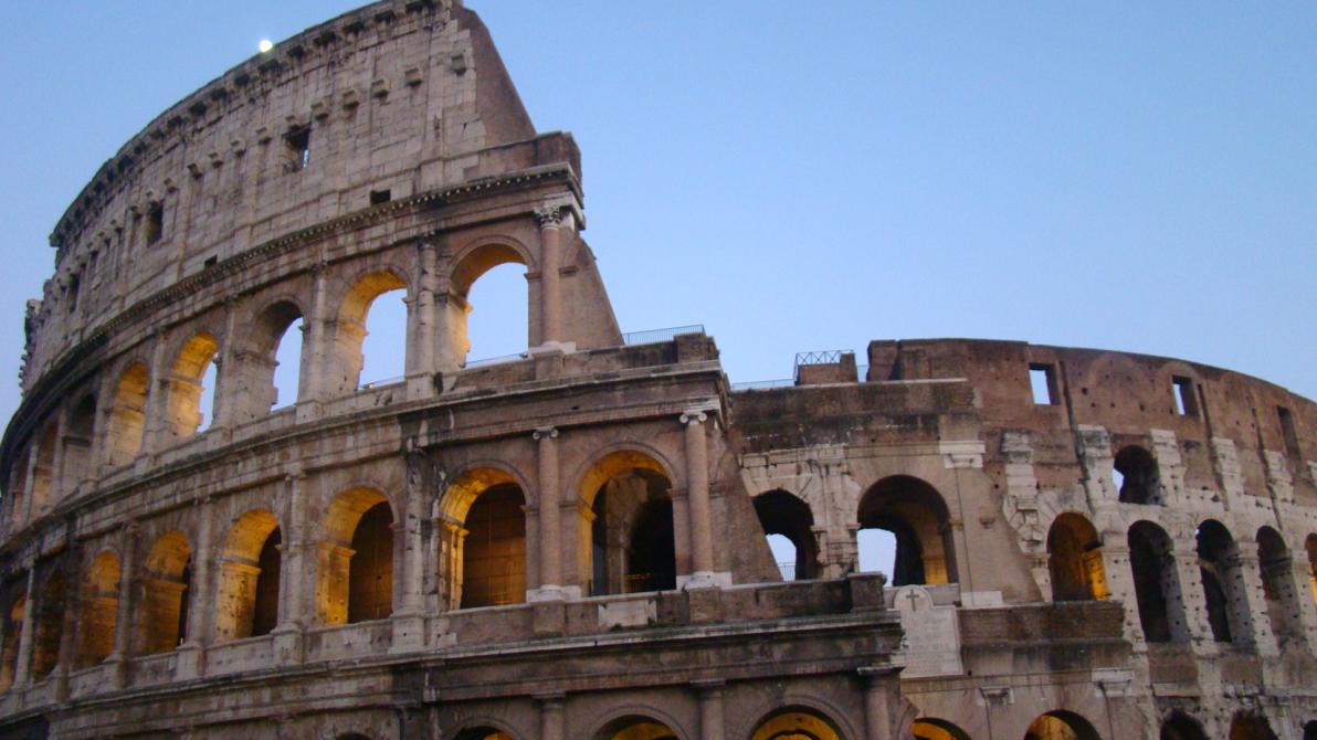 Кстати на фото Колизея (внешне) обратите внимание слева вверху белая яркая точка, это Луна, я специально её так поймал, люблю фотографировать небо)