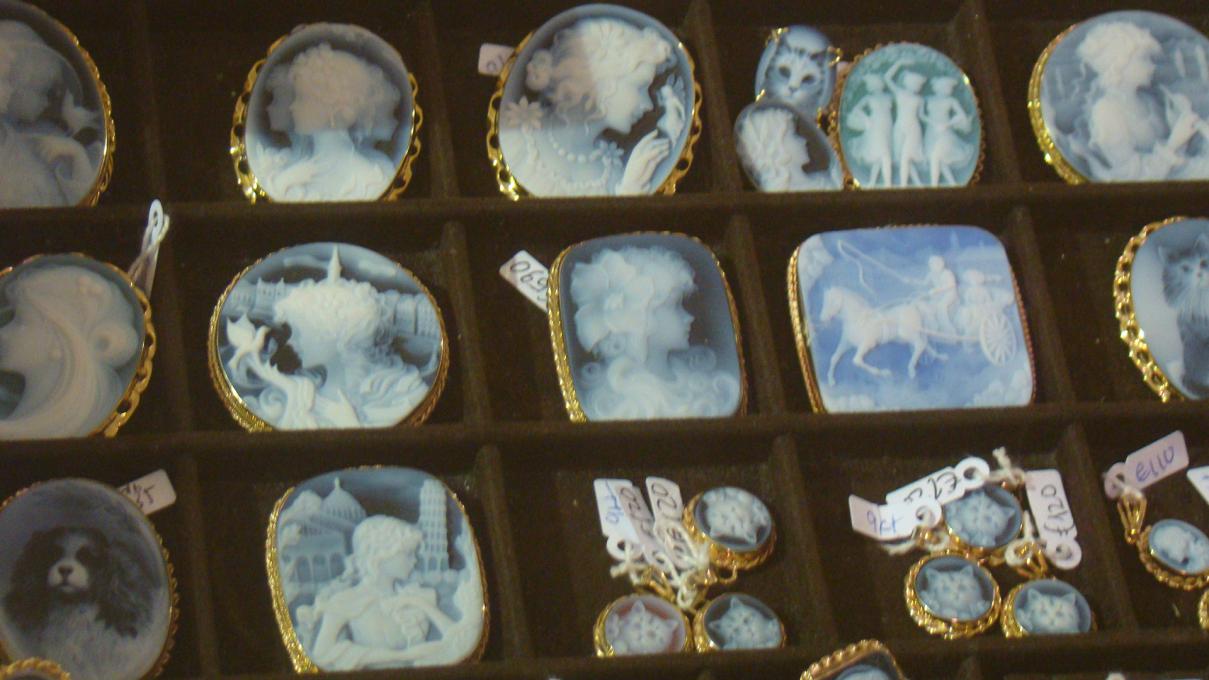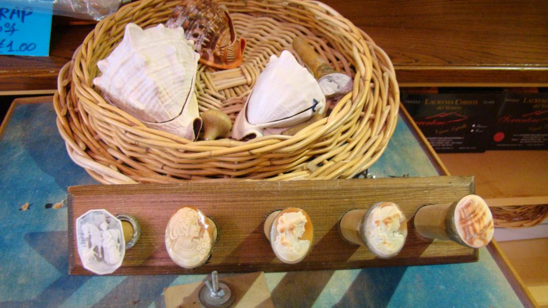 По дороге из Рима в Неаполь мы остановились в одном местечке (для перекуса) и зашли в интересный магазин, где продают местные изделия монахов. Вообще от Рима до Неаполя это большое побережье, там в море собирают раковины и местные монахи, как на мобъяснили делают из этих раковин КАМЕИ, ещё из кораллов (красных) делают ожерелья в виде ПЕРЦА, Неаполетанцы верят что такие ожерелья защищают их от зла + считается что если ребёнок носит красный коралл на теле то по кораллу можно определить болен или здоров ребенок (он ведь ещё сказать не может, если маленький), поэтому всем детям там обычно сразу покупают подобное ожерелье или талисман.