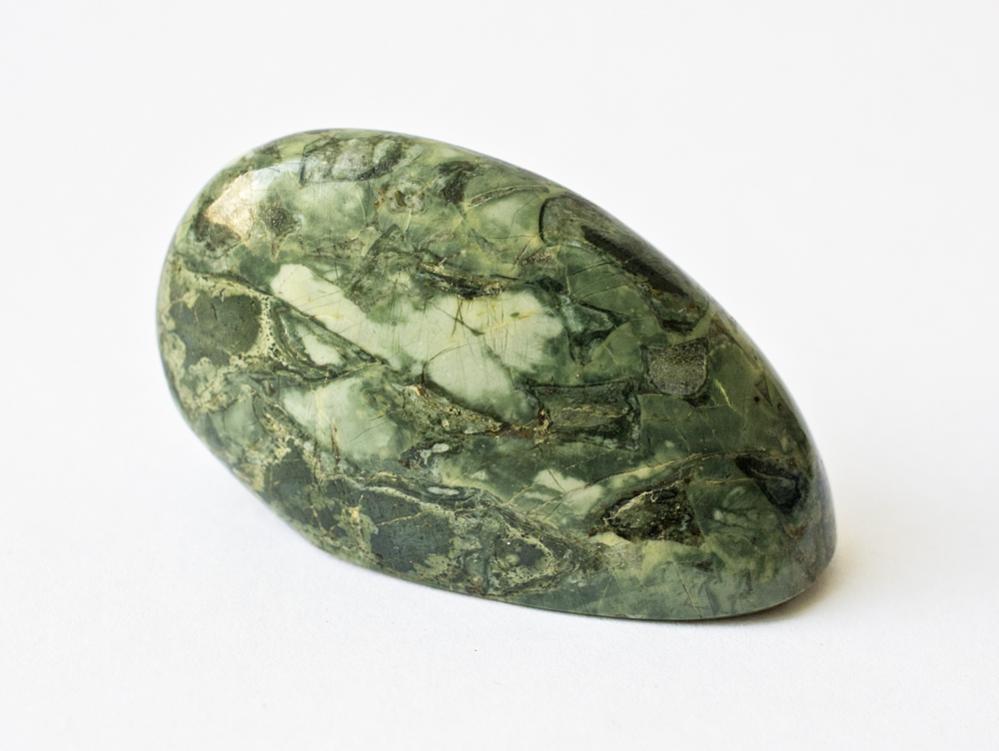 В одной из недавних поездок в горы за камнем (жадеит, нефрит) насобирали несколько образцов в форме речной гальки внешне очень похожих на жадеит и нефрит, только значительно мягче. Но встречаются вместе с ними. После шлифовки выяснилось, что это серпофиты (благородный змеевик).