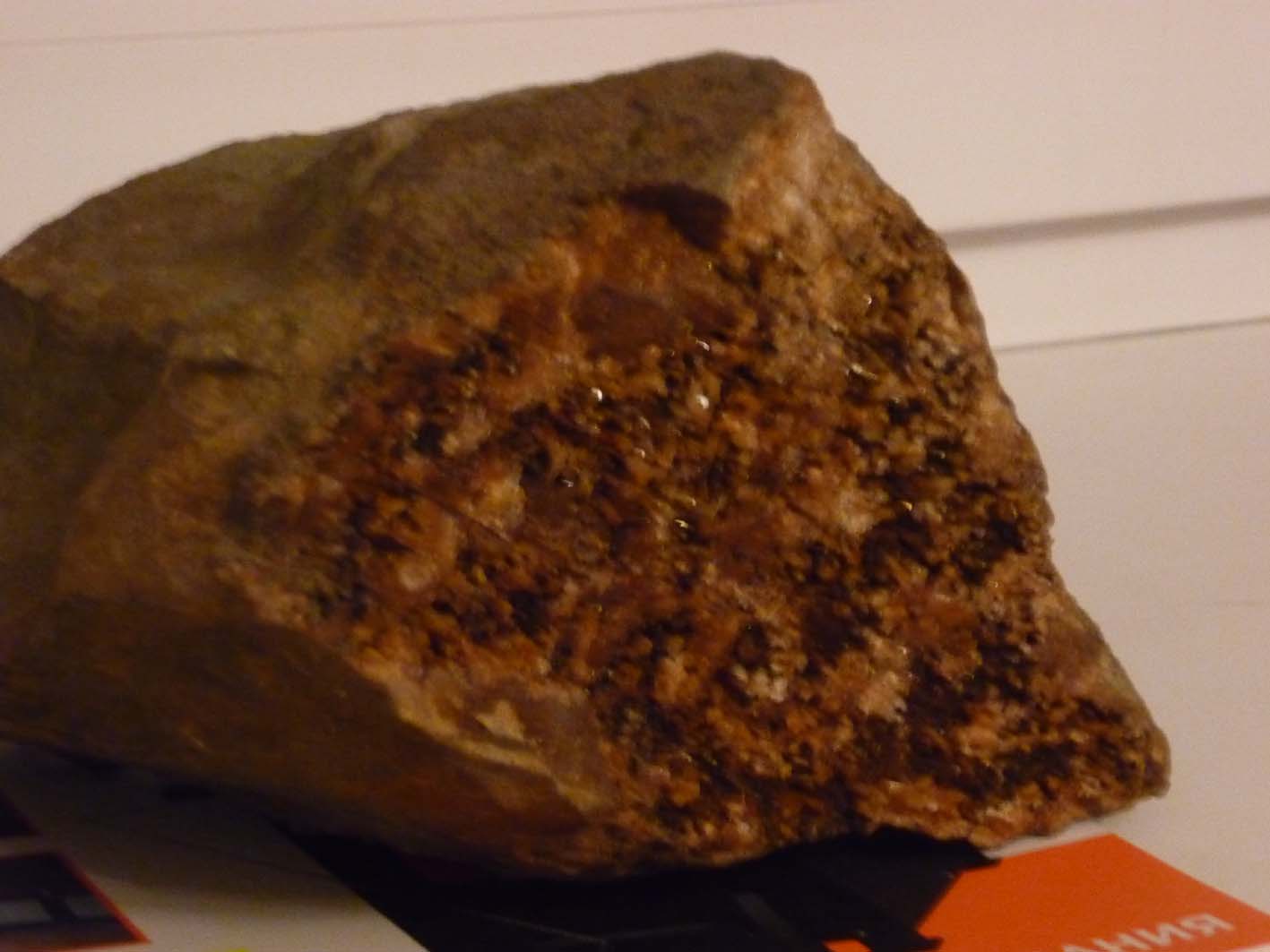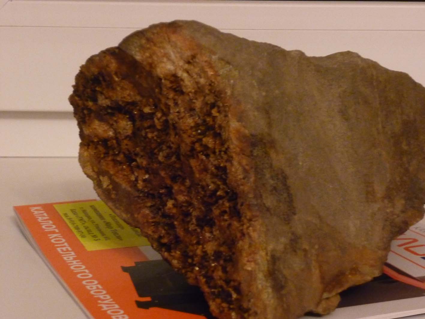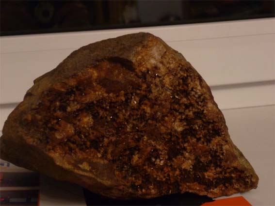 Здравствуйте! Мой сын подарил мне кусок булыжника: снаружи камень как камень, а внутри кристаллы, очень мелкие: 1-2 мм, цветом от светло-жёлтого, до тёмно-коричневого. Они с другом случайно его уронили и раскололи, а внутри оказалась эта красота. Подскажите, что это такое?