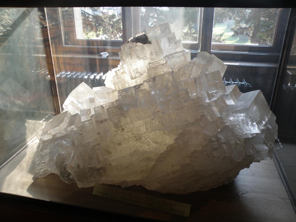 4. Галит (Каменная соль), 1000 кг — Steinsalz von Wieliczka — Geschenk des k.k. Fin... (не разборчево написано) i.J. 1900 — Gew. cca.