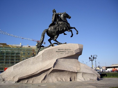 В Санкт-Петербурге есть конная статуя Петру I "Медный всадник", которая установлена на гранитном пьедестале, известном как "Гром-камень".