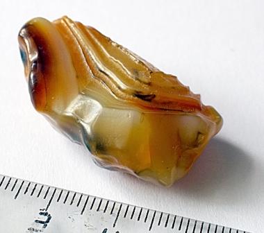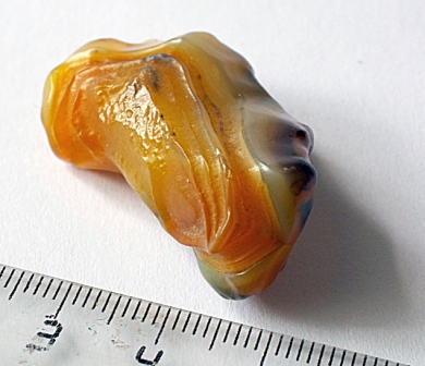 Вот такой камушек где-то нашёл на дороге. То ли халцедон, то ли что-то ещё из разновидностей кварца.