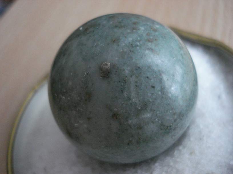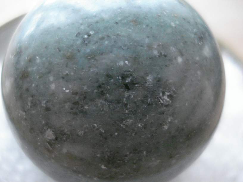 Включения в шарике (розоватые) мне напоминают лепидолит.