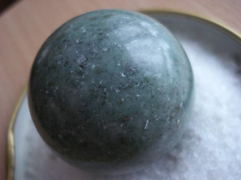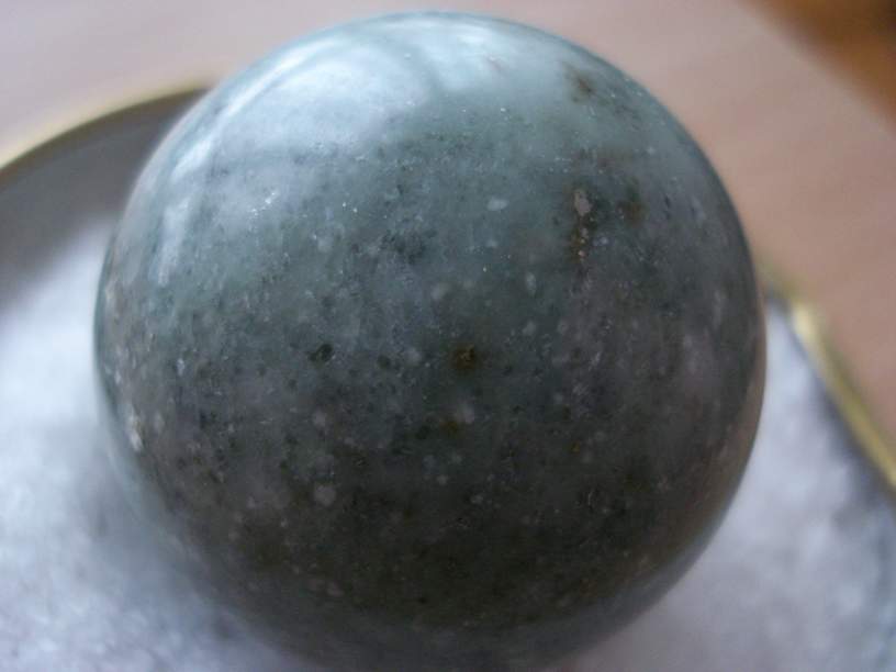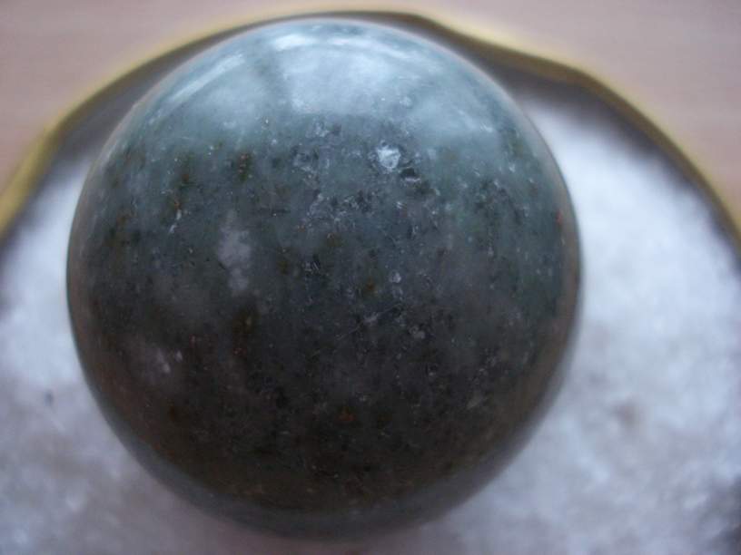 Включения в шарике (розоватые) мне напоминают лепидолит.