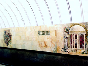 Не запомнила , но скорее всего это то, о чём говорит Solntse - на Чеховской в мозаичном панно.