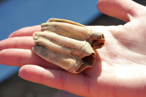 И вот ещё там же нашел окаменелую кость. Древняя белуга?