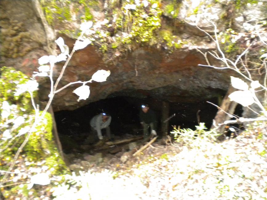 На выходе. Вроде, из средней дыры штольни Рогосельга. Похоже, дыра образовалась за счёт выработки рудного тела.