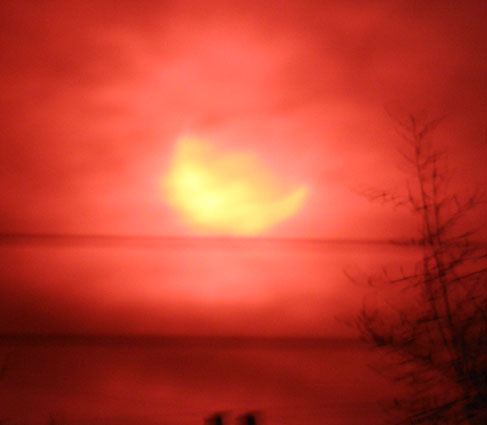 Вот мои три копейки. Снято Олимпусом на 18х с автовыдержкой (около 1000), подкорректированно в Фотошопе (срезал лишний фон, практически убрал всю яркость и чуток добавил котрастности). Коричневая картинка - через дискету. Облачность поганая, плотная, ничего не видно. А вот 3 км к западу - и было бы все окей.