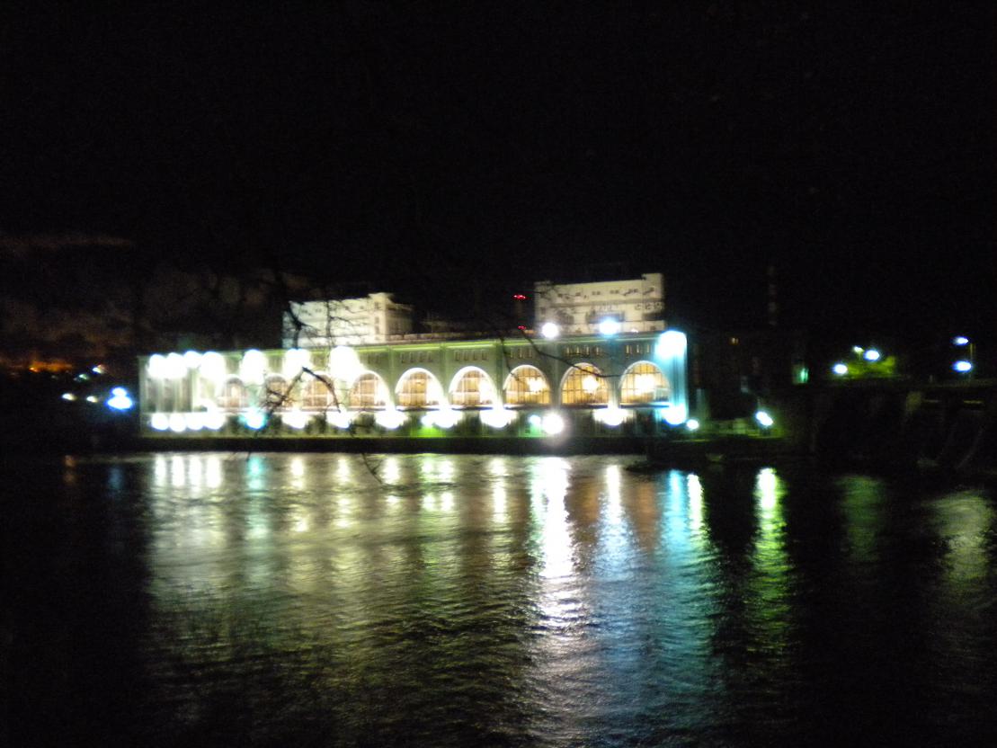 Ночью Волховская гидроэлектростанция выглядит красивее чем днём.