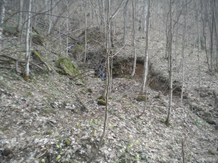 ![]() Каждая терраска вела к своей штольне, которые сейчас пребывают в разной степени замурованности. На терраске, где стояла палатка, в породах склона разовый замер показал 140 мкР/час. Ниже есть, как минимум, ещё одна терраска/штольня. Выше по склону от третьей штольни, судя по нумерации, должны быть ещё две штольни. Или у штолен, в отличие от шахты, нумерация горизонтов ведётся снизу вверх? |