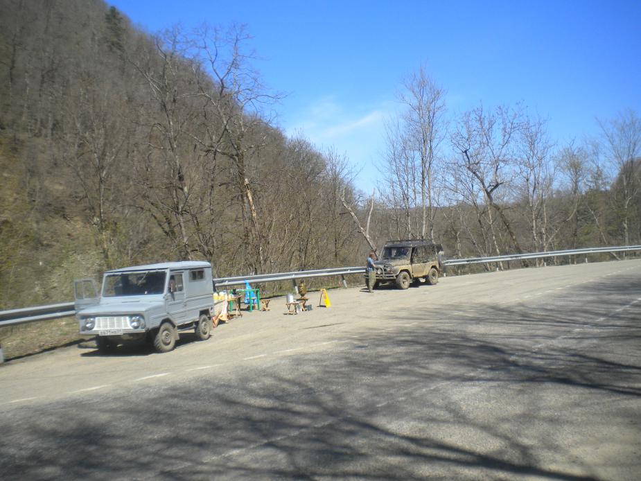 Наплыв туристов ожидается на майские праздники. Туристов оттуда по реке Белая сплавляют. Местные, которые нам там встретились, были очень доброжелательны. Как гора называется, забыл. |