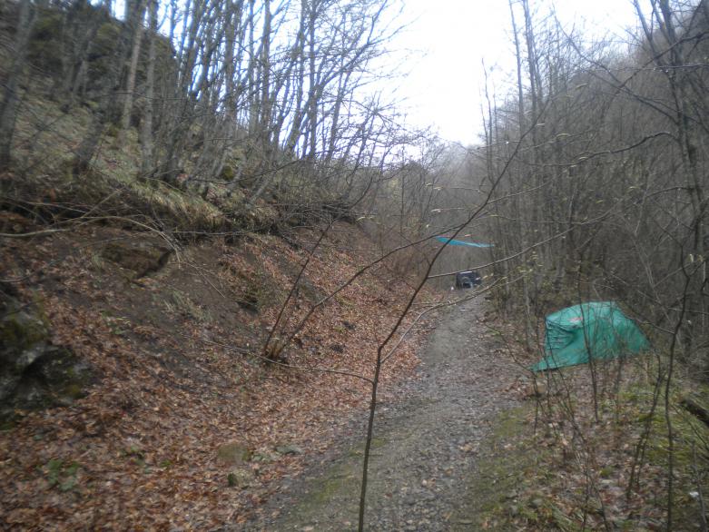 На терраске, где стояла палатка, в породах склона разовый замер показал 140 мкР/час. Ниже есть, как минимум, ещё одна терраска/штольня.