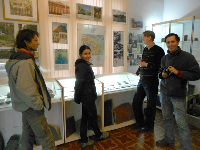 Игорь Борисов проводит нам экскурсию в Геологическом зале музея.