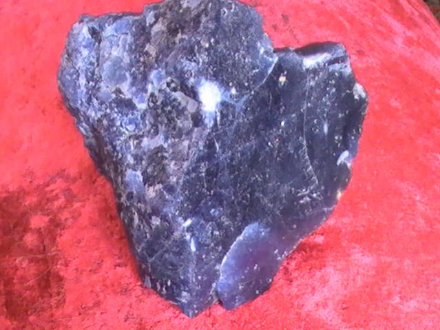 Не могу определить, что за минерал: лазурит или содалит. Может есть способы проверки в домашних условиях? Капал солянку — реакции нет (может солянка слабая). Чертил минералом по фарфору — на минерале остаются следы фарфора и всё. Тёр надфилем — порошок светло-серый.