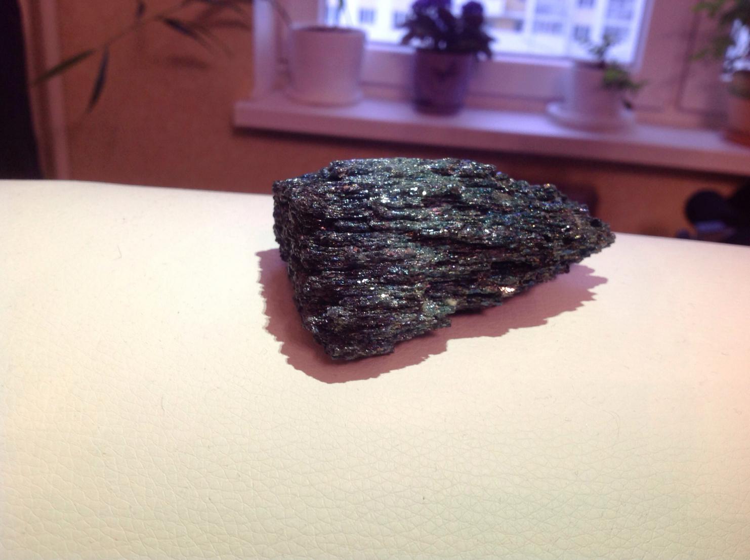 Пожалуйста подскажите что это, лежит у меня много лет, неоднократно размещала на сайтах с тем же вопросом, но увы.. Никто не знает! Он крошится, похож на металлическую структуру, снизу вверх плавно переходит цветовая гамма от синего до зеленого, сверкает!???