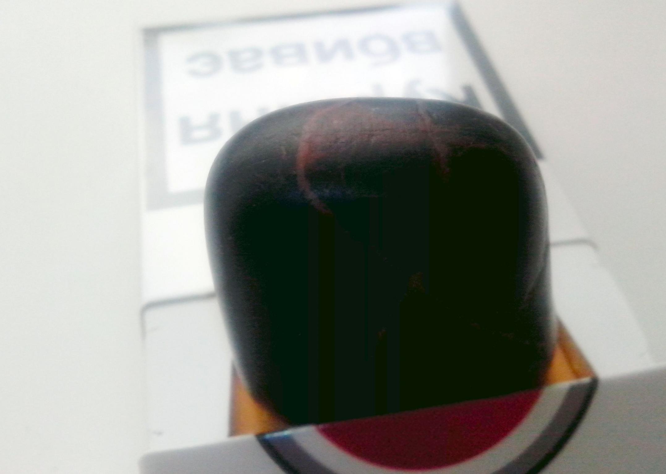 Во время прогулки мне попался камень чёрного цвета с кирпично-розовыми прожилками... Да и в других местах под чёрной структурой просматривается розоватый цвет.