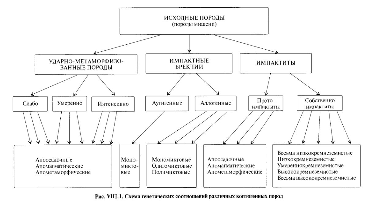 При этом импактиты — это продукты полного плавления породы. Метаморфитами они не являются, точно также, как импактные брекчии.