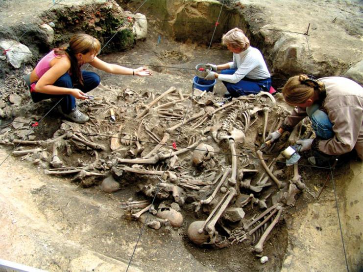 Слева на фото в костях копается Александра Петровна Бужилова, доктор исторических наук, член-корреспондент РАН, директор НИИ и Музея антропологии МГУ.