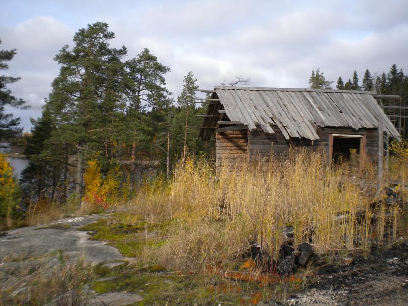 Андрей, бортпроводник по образованию, переехавший из Латвии в Питкяранта (о чём сожалеет), бродил у Ладожского озера с фотоаппаратом. Он показал Arty и bluesroad руины завода, расположенные в 15 минутах ходьбы от стоянки. Николай, жестянщик с Питкярантского целлюлозного завода, по выходным ездит на Ладогу на велосипеде ловить рыбу. Когда ночью в сучковатом полене у меня застрял топорик, Николай ловко изготовил своим топором клин и забил его в полено. К сожалению, я не дал ему расколоть полено до конца. В результате, когда он уже уехал на своём велосипеде, мне в этом полене заклинило палец. Третьей была женщина, гулявшая по берегу озера и отказавшаяся разделить c нами сваренную bluesroad гречневую кашу, со словами: “Спасибо, я уже завтракала!” |