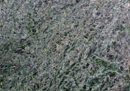 Немного крошится в обломки кристаллов-иголочек (как у ёлки). Легко пилится "Болгаркой". На поверхности проявления белого металла. При попадании света очень эффектно переливатся огоньками, блестит как гора самоцветов.)))