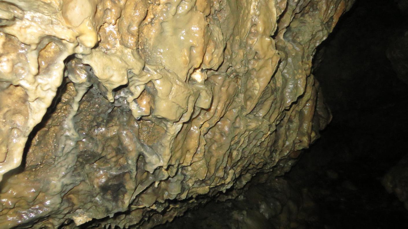 Хотя на ощупь кальциевые натёки, сталактиты, сталагмиты очень даже шершавые, как накипь внутри чайника.))) Я умудрился порасцарапать о них кисти рук.