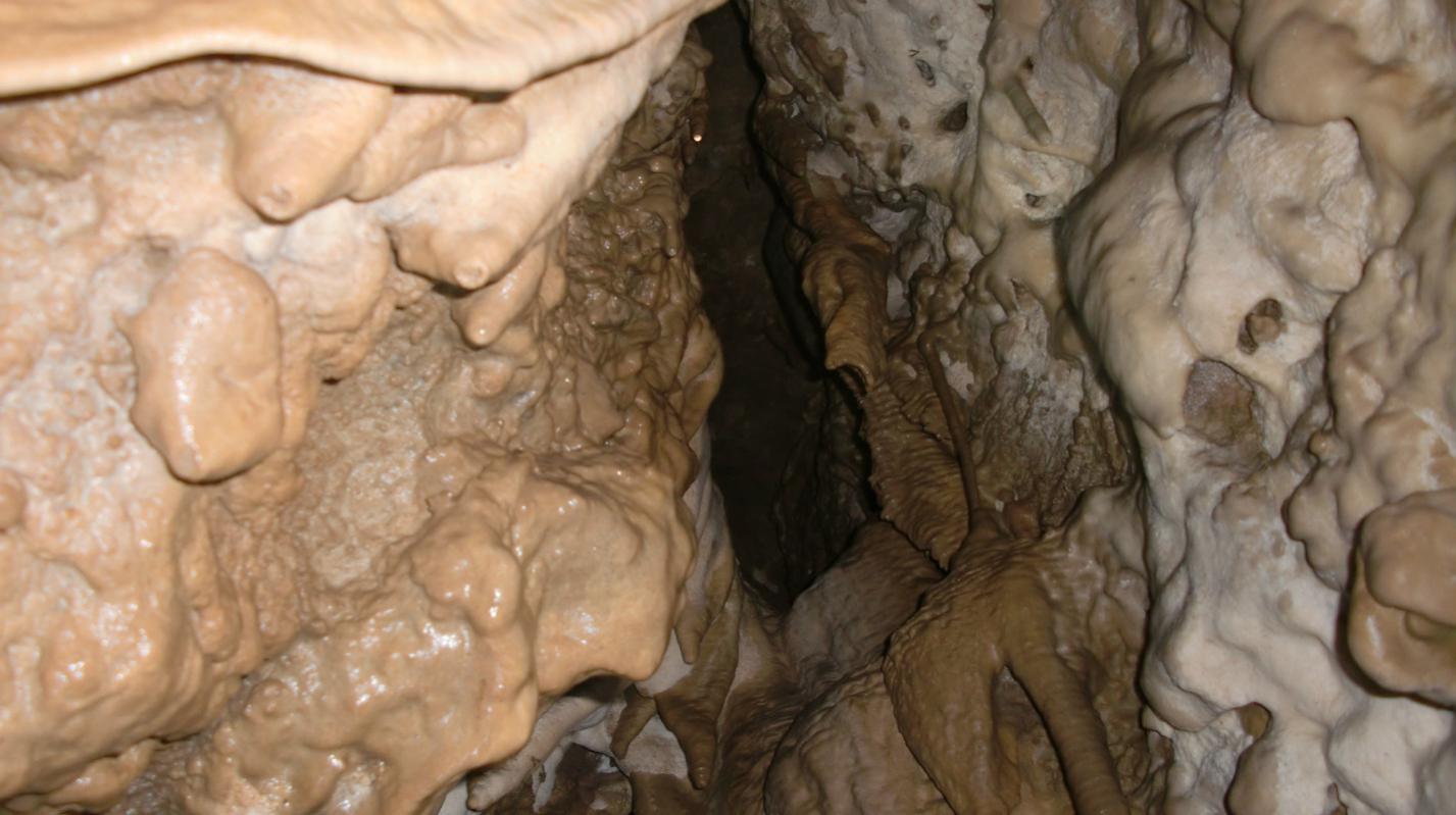 Пещера представляет собой узкую трещину-расщелину, опускающуюся вниз под углом, и заканчивается озерцом. А что там дальше — кто его знает)))