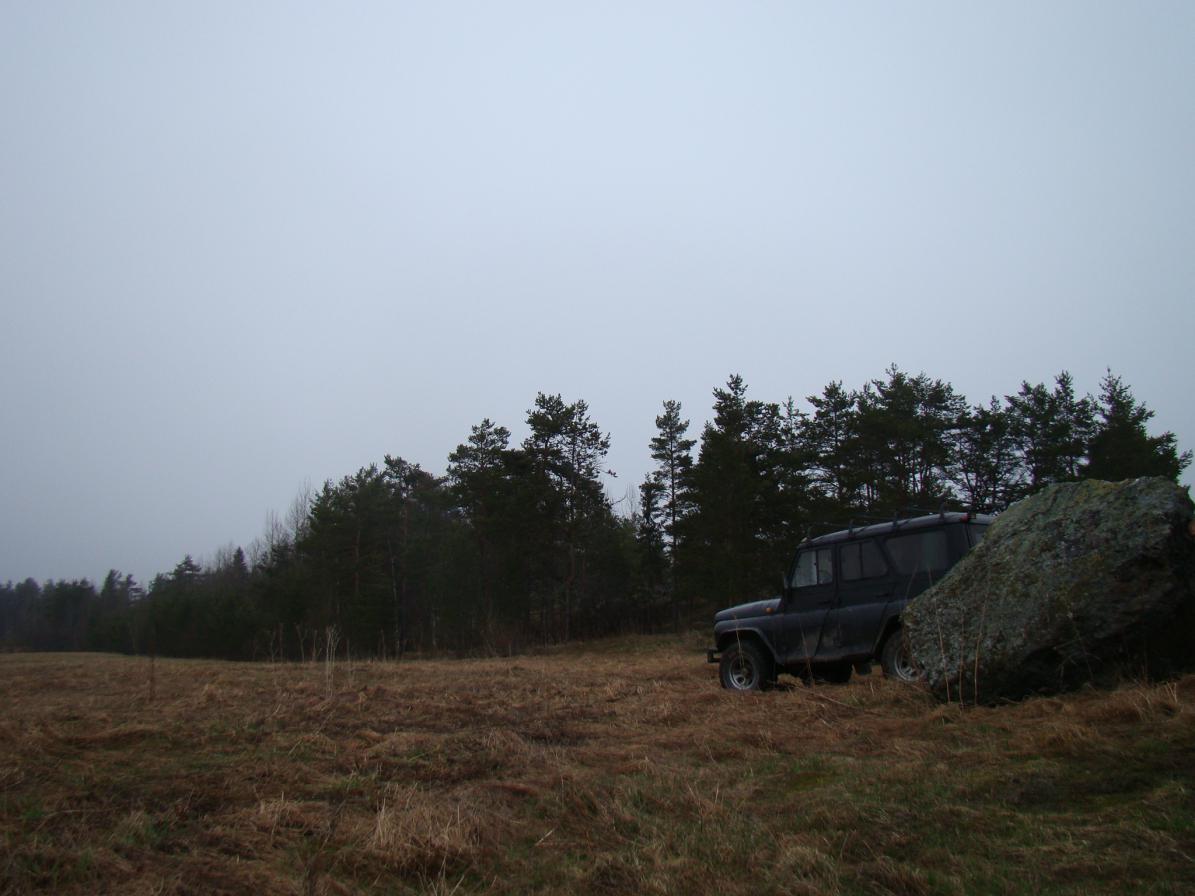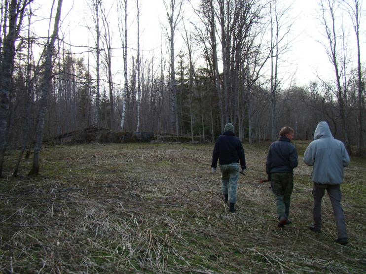 Третьей и последней точкой на о. Риеккалансаари стала выработка Муркианмяки, которая находится около Форелевого хозяйства. На подъезде к маршрутной точке нас громким лаем встретил, как потом оказалось, чистопородный и совсем милый Алабай, по кличке Сэм. Увидев