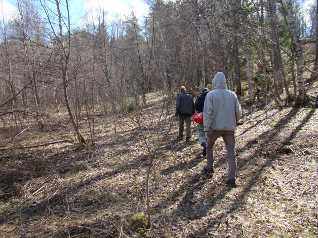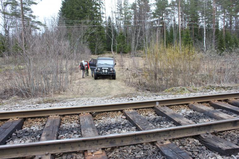 Далее, вооружившись автомобильным навигатором, благодаря которому мы чуть было не остались ночевать в лесу, продолжаем маршрут пешком. После долгих и безрезультатных плутаний по карельскому, местами заболоченному лесу, принимаем решение отказаться от современного чуда техники, а чётко следовать указаниям Игоря Борисова и идти по тем ориентирам, которые он нам указал в собственноручно нарисованной карте (ручей, железный столб, развалины обогатительной фабрики, насыпи, УЗКОКОЛЕЙКА, карьер). Мы чувствовали себя кладоискателями. Начинало потихоньку смеркаться, а узкоколейки и карьера всё не было. Фонарей у нас тоже не оказалось, потому что планировали только посмотреть, а утром вернуться вновь.