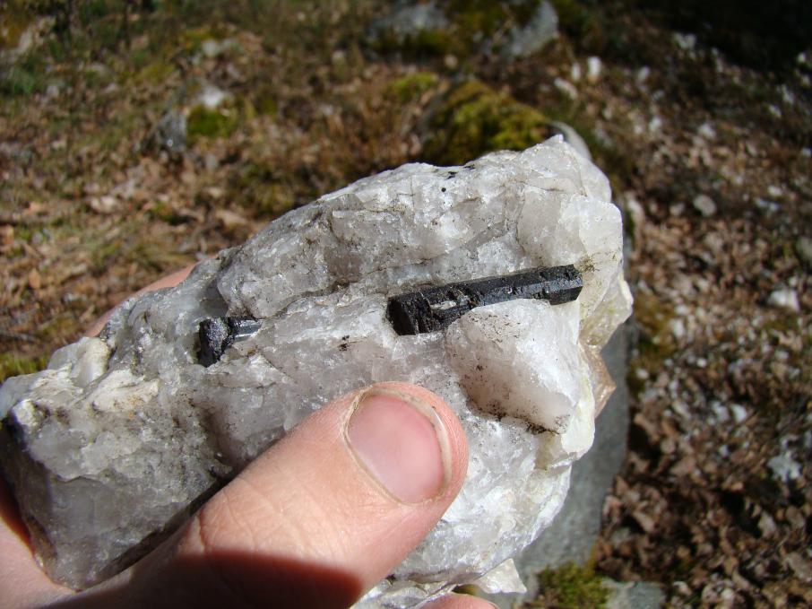 Найти отвалы горной выработки Муркианмяки было не совсем легко. В итоге, с помощью местных развозчиков радужной форели, нам удалось это сделать. На вершине горы мы обнаружили затопленную шахту, а на склоне, обращенном в сторону деревянных домиков, построенных для работников форелевого хозяйства, среди пегматитовых отвалов мы обнаружили затопленную штольню. В отвалах горной выработки нам встретились: розовый кварц, дымчатый кварц, турмалины (шерл), альбит, слюды. В коренном обнажении пегматитов, прямо над штольней, видны шестигранники довольно крупных кристаллов шерла.