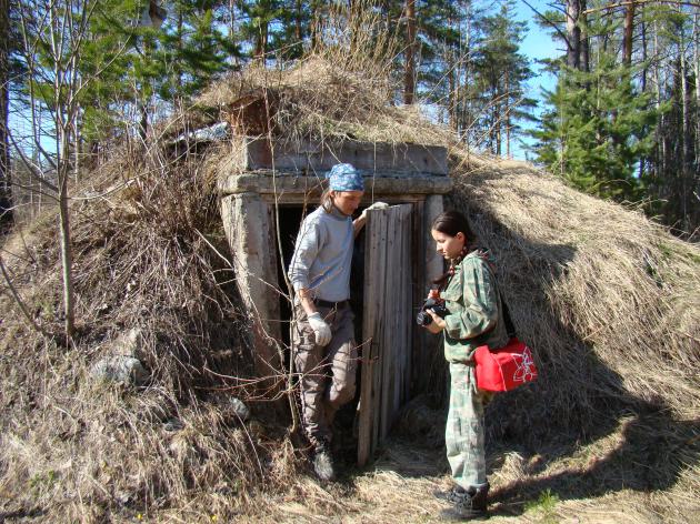 г. Муркианмяки, ориентиром на штольню и отвалы служит домик из сруба.
