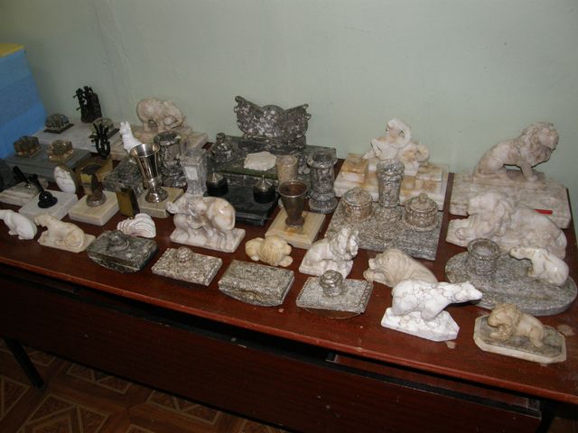 Да, в основном ангидрит, селенит, письменные приборы из мрамора. Гипсовое литье. Фаянс, фарфор (мало, это не главное для нас).