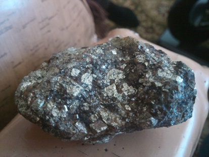 Здравствуйте Господа. Подскажите, что это за минерал, и что за включения в нем? Нашел в воскресенье в горах возле Усть-Каменогорска.