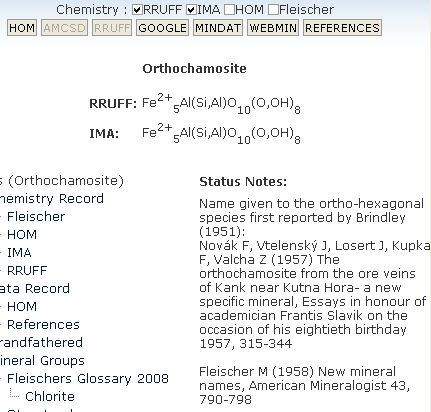 При этом список минералов от 2009 года вообще не содержит ортошамозит.