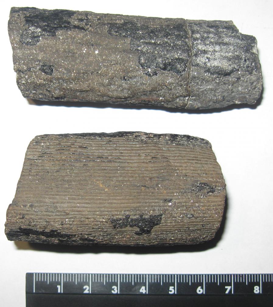 В угольной шахте (Донецкая область) на глубине около 700 метров нашли 2 обломка окаменевших веток. Хотелось бы узнать к какому дереву они относятся и примерный возраст.